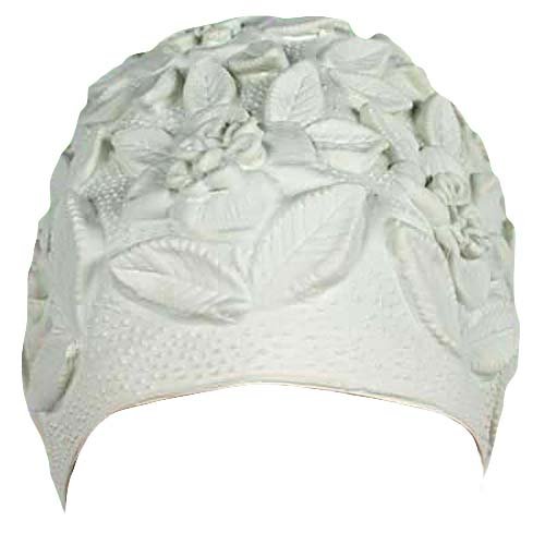 WHITE FLORAL EMBOSS VINTAGE STY LATEX SWIM BATHING CAP Overview