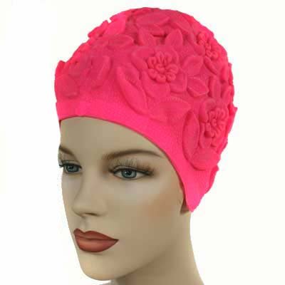 Hot Pink Floral Vintage Style Latex Swim Bathing Cap Feature