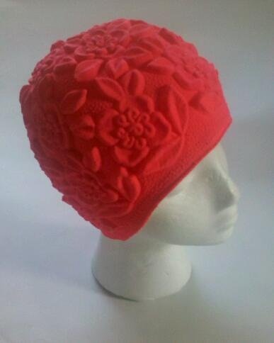 Fashy Floral Emboss Vintage Style Latex Swim Cap -PINK - Made in Germany Feature