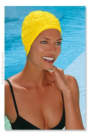 Fashy Floral Emboss Vintage Style Latex Swim Cap -YELLOW - Made in Germany Review